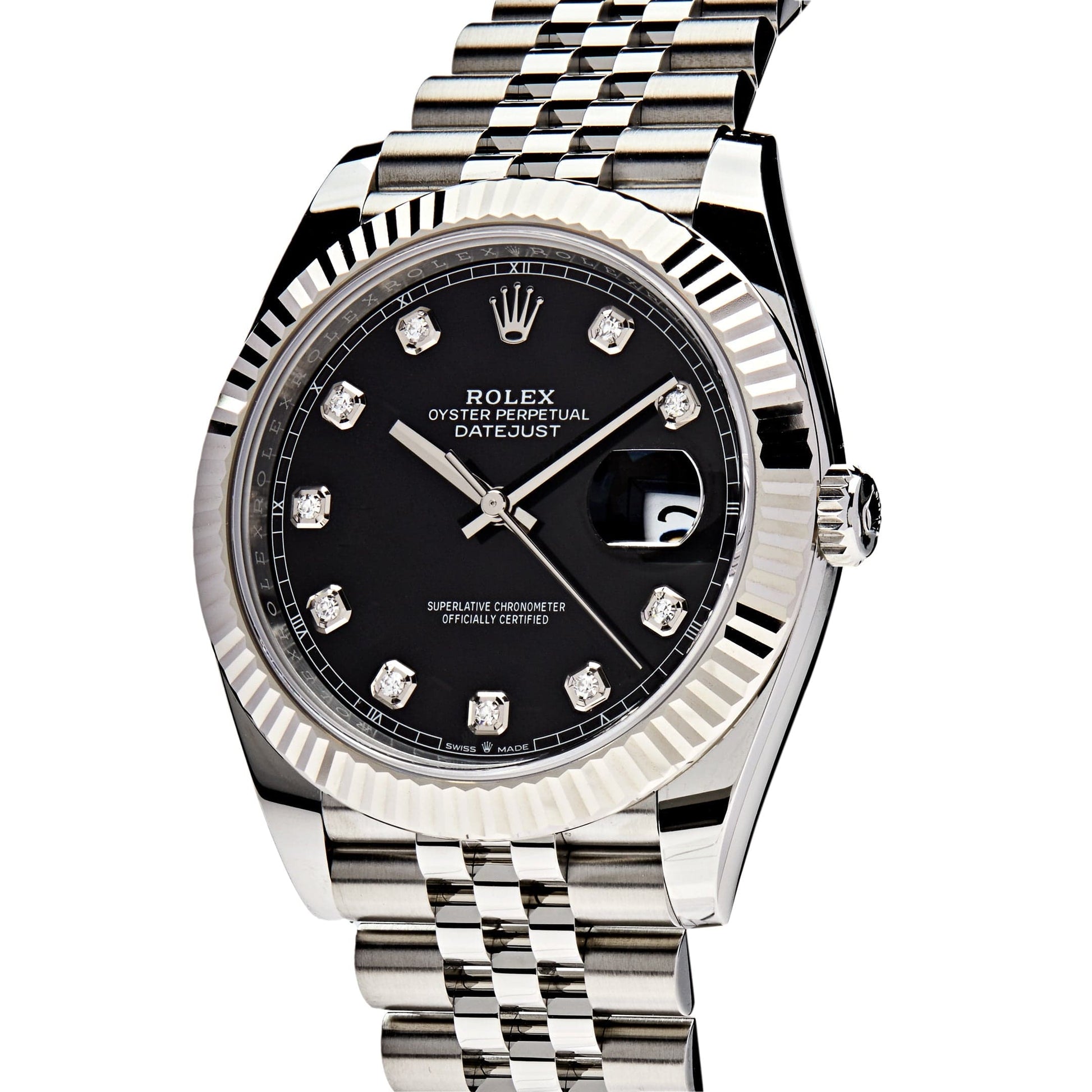 The 2025 Watch Datejust is designed with a 41mm stainless steel case.?complemented by the signature fluted bezel. and styled on a steel jubilee bracelet. The?black?dial features?diamonds positioned every hour and hosts a date feature at 3 o'clock. The 2025 Watch Datejust is a classic model and the next addition to your collection.