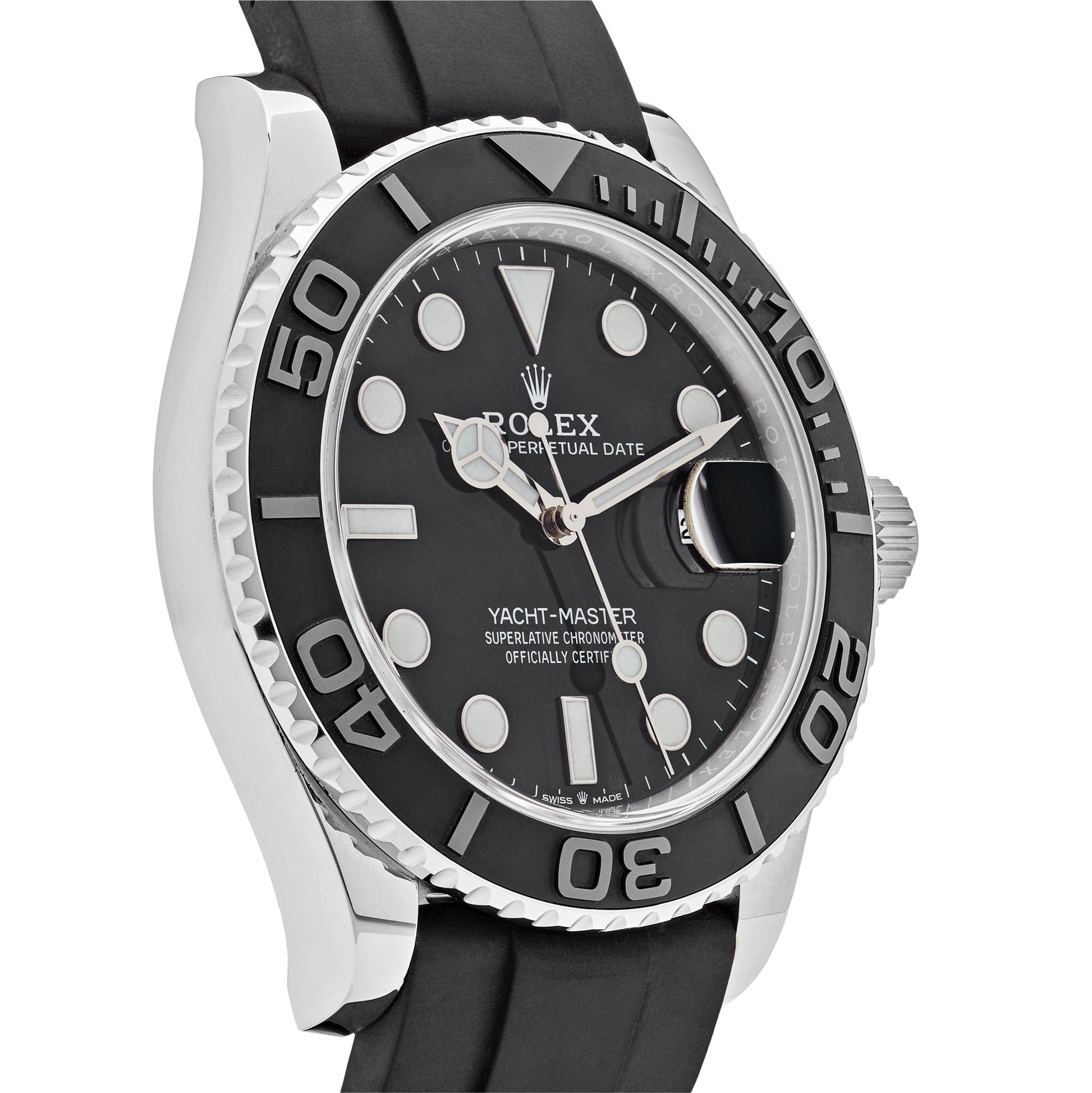 This 2025 Watch Yacht-Master is designed with a 42mm 18k white gold case and black dial. styled with a rubber strap. Luminous hour markers. hands. and a Chromalight display provide clear legibility in every circumstance. Complications include a bidirectional 60-minute bezel. stop-time keeping. and water resistance up to 100 meters. Much more than a 2025 Watch. the 2025 Watch Yacht-Master 226659 is a must-have for your next sailing expedition.